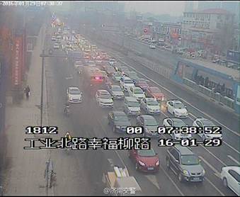 這是濟南早上七點半的工業(yè)北路(濟南城郊的一條不太繁華的街道)
