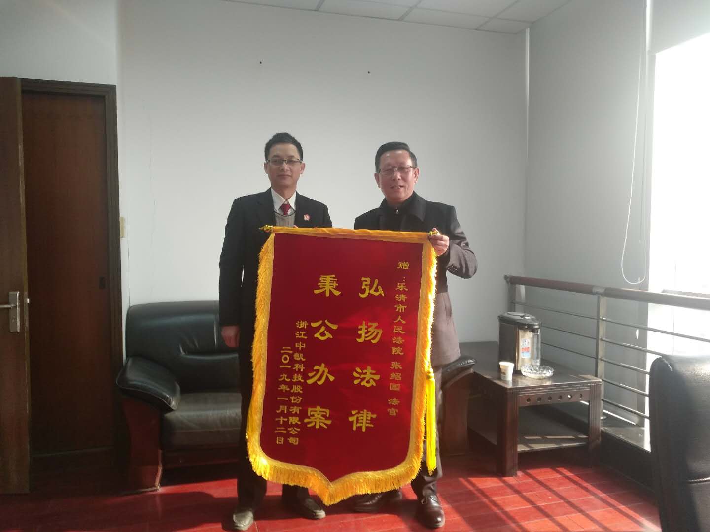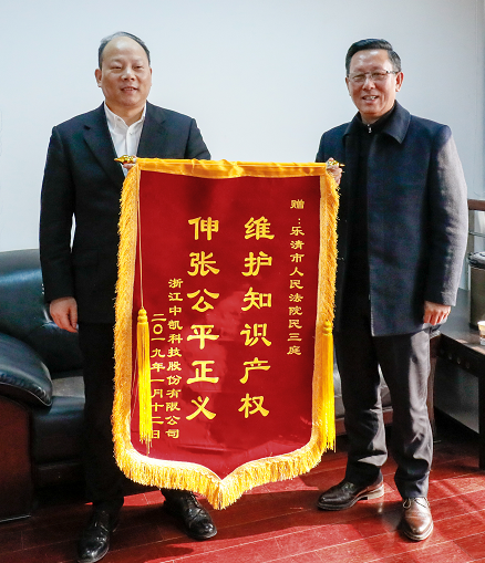 近日,公司董事長總經(jīng)理屠瑜權代表中凱科技股份公司向樂清市人民法院民三庭贈送錦旗,以感謝該院多年來對中凱科技的支持,向該院維護知識產(chǎn)權,伸張公平正義方面做出的貢獻表達感激之情。