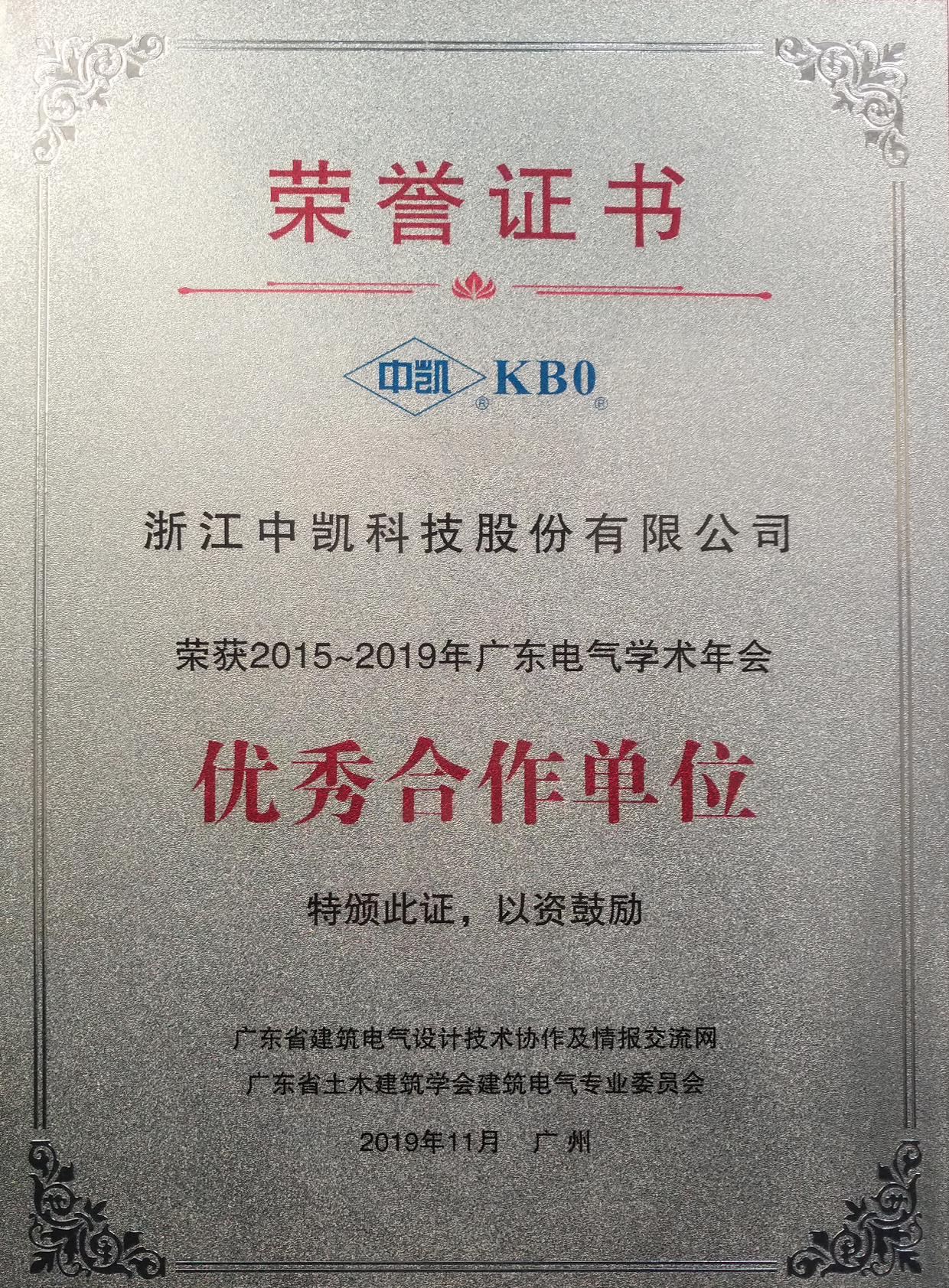 日前,在2019年廣東建筑電氣與智能建筑年會(huì)暨學(xué)術(shù)交流會(huì)上,浙江中凱科技股份有限公司榮獲2015-2019年優(yōu)秀合作單位。