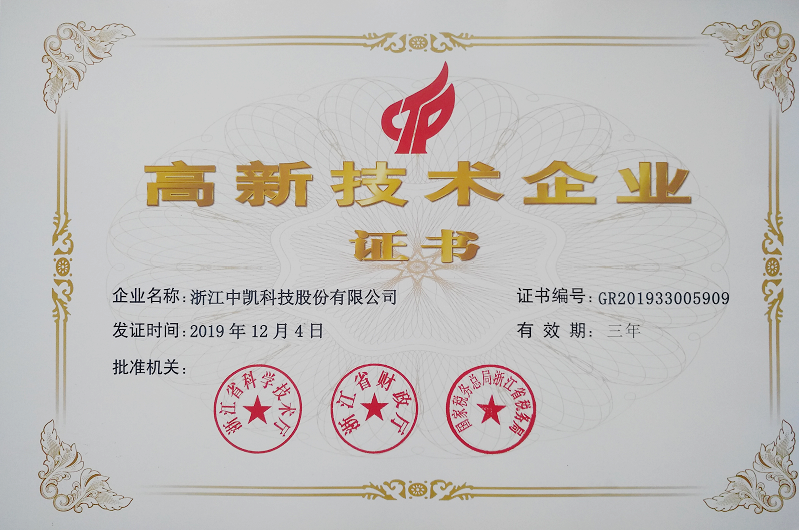 近日,從國家科技部傳來好消息,浙江中凱科技股份有限公司再次獲得“國家高新技術(shù)企業(yè)”復(fù)審?fù)ㄟ^。這是中凱科技獲得高新技術(shù)企業(yè)多次認(rèn)定后的又一次實(shí)質(zhì)性復(fù)審,表明了該企業(yè)科技含量高、創(chuàng)新能力強(qiáng)和持續(xù)發(fā)展的動(dòng)力強(qiáng)勁。