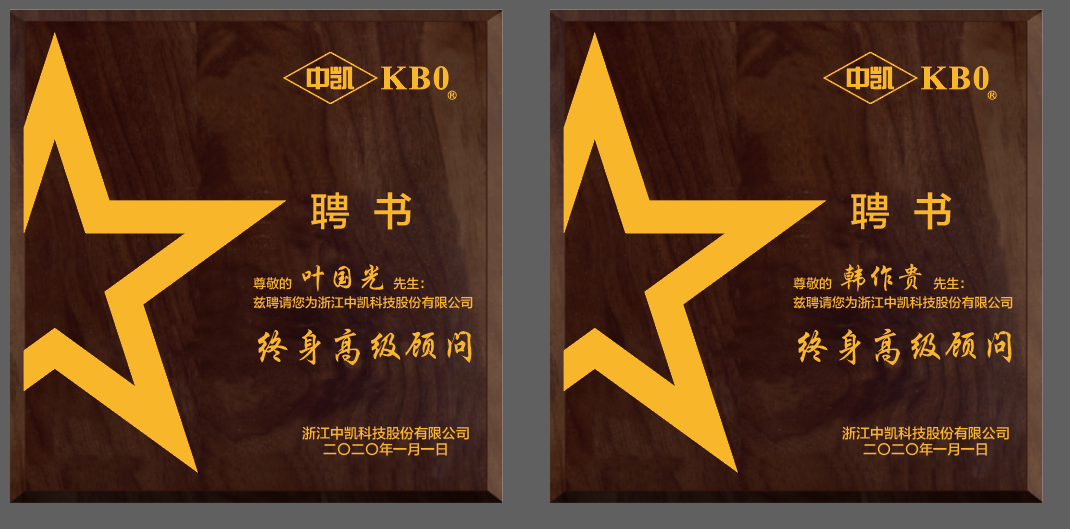 2020年5月21日,中凱科技分別向葉國光和韓作貴頒發(fā)聘書,聘請(qǐng)兩人為浙江中凱科技股份有限公司終身高級(jí)顧問。