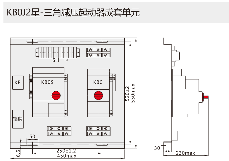 以KB0作為主開關(guān),與適當(dāng)?shù)臅r(shí)間繼電器、電氣聯(lián)鎖、機(jī)械聯(lián)鎖等附件組合,構(gòu)成Y-△減壓起動器成套單元KB0J2(以KB0-F消防型產(chǎn)品作為主開關(guān),可構(gòu)成消防型Y-△減壓起動器成套單元KB0J2-F, 具有過負(fù)荷僅報(bào)警不跳閘,短路時(shí)報(bào)警+跳閘的功能。)可實(shí)現(xiàn)110kW及以下的電動機(jī)的Y-△減壓起動控制與保護(hù)。