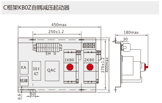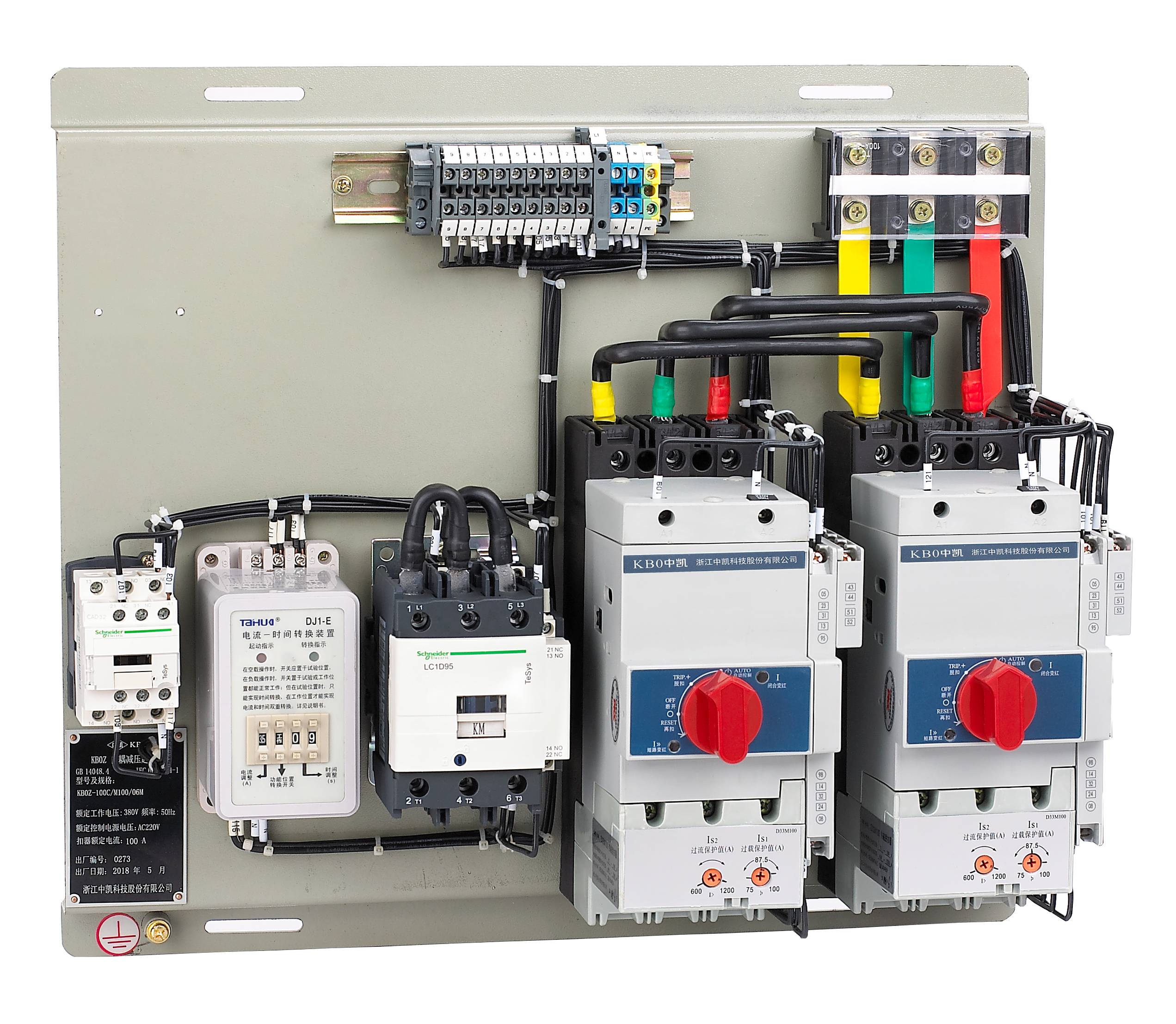 以KB0作為主開關(guān),與接觸器、時間電流轉(zhuǎn)換裝置、電氣聯(lián)鎖等附件組合,構(gòu)成自耦減壓起動器成套單元KB0Z(以KB0-F消防型產(chǎn)品作為主開關(guān),可構(gòu)成消防型自耦減壓起動器成套單元KB0Z-F)可實現(xiàn)110kW及以下的電動機的自耦減壓起動控制與保護(hù)。