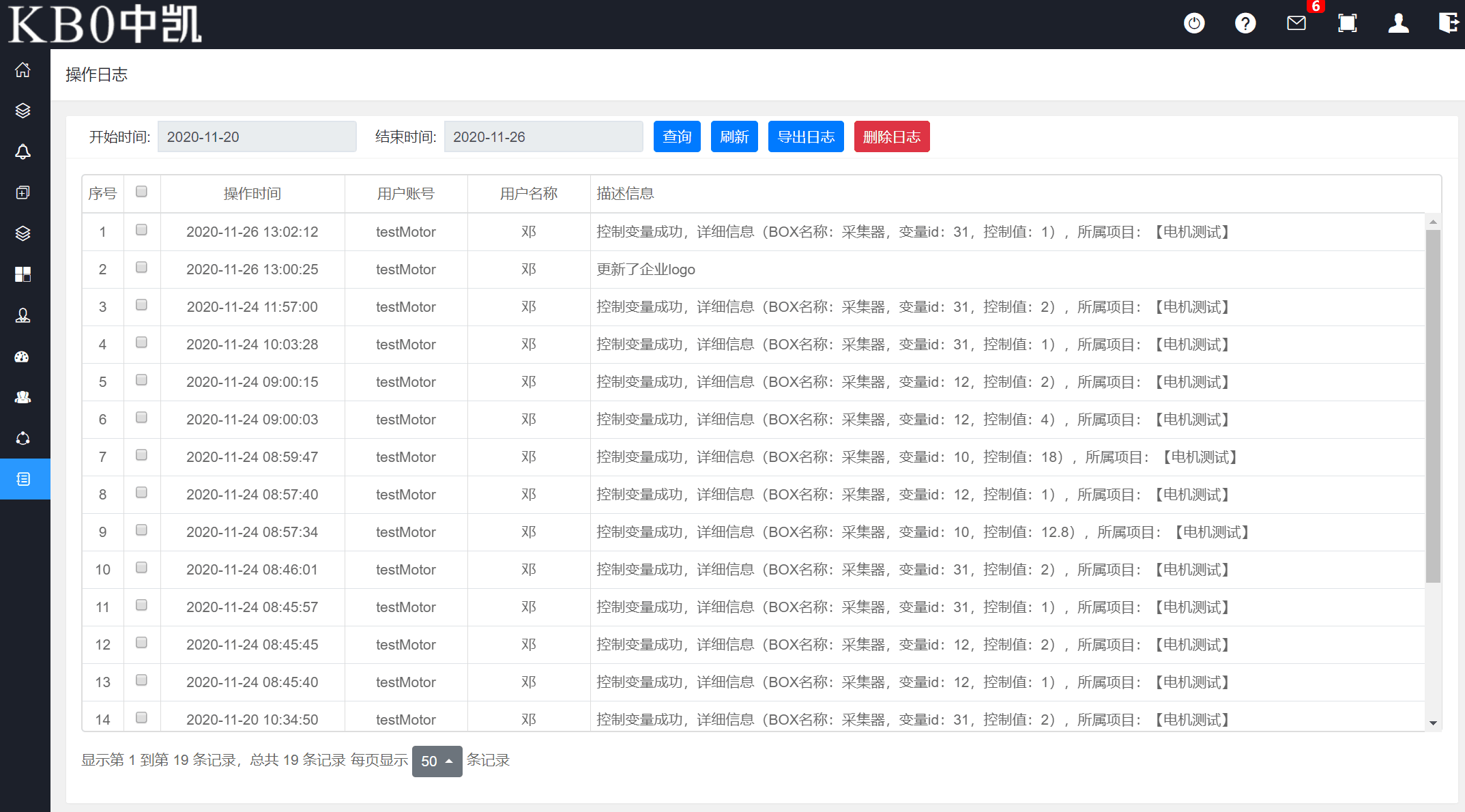 系統(tǒng)將各種狀態(tài)的變化和操作人員的操作活動(dòng)情況記錄到日志程序中,用戶可通過(guò)日志進(jìn)行維護(hù)管理